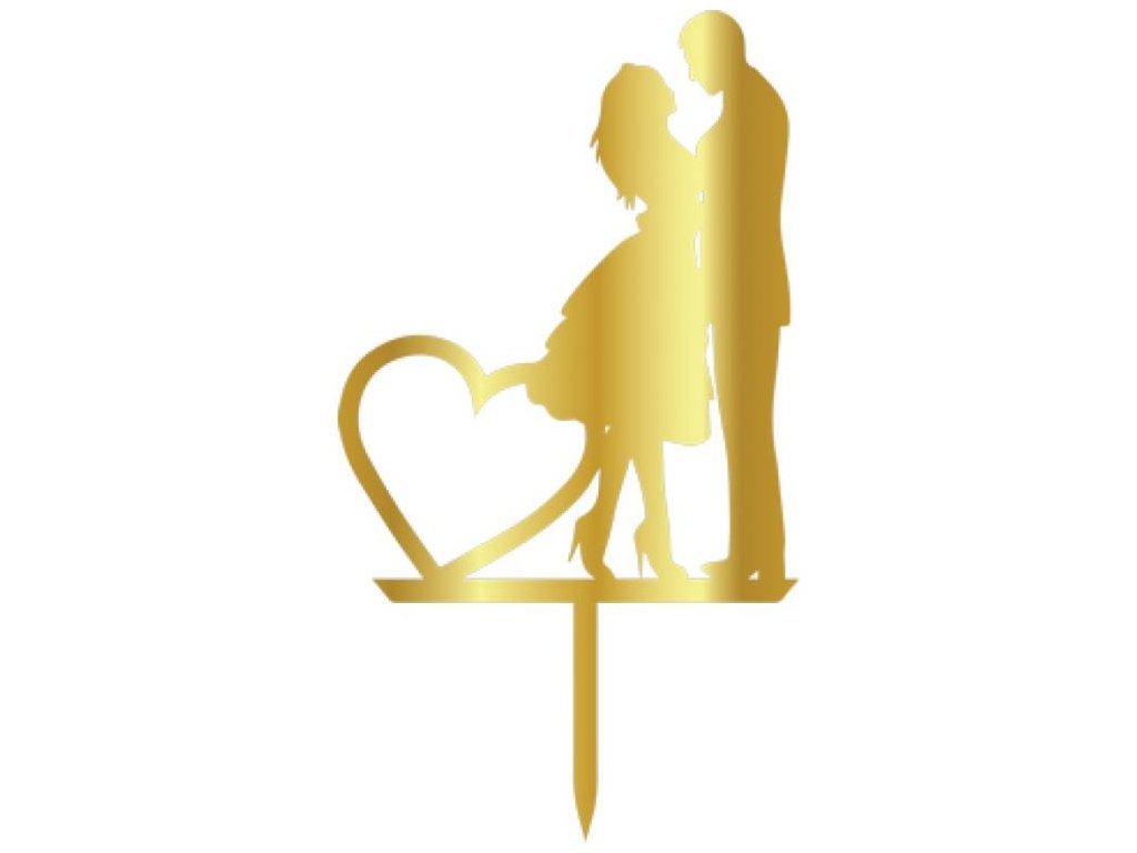 Cesil Zapichovací plastová dekorace Novomanželé se srdíčkem zlatá